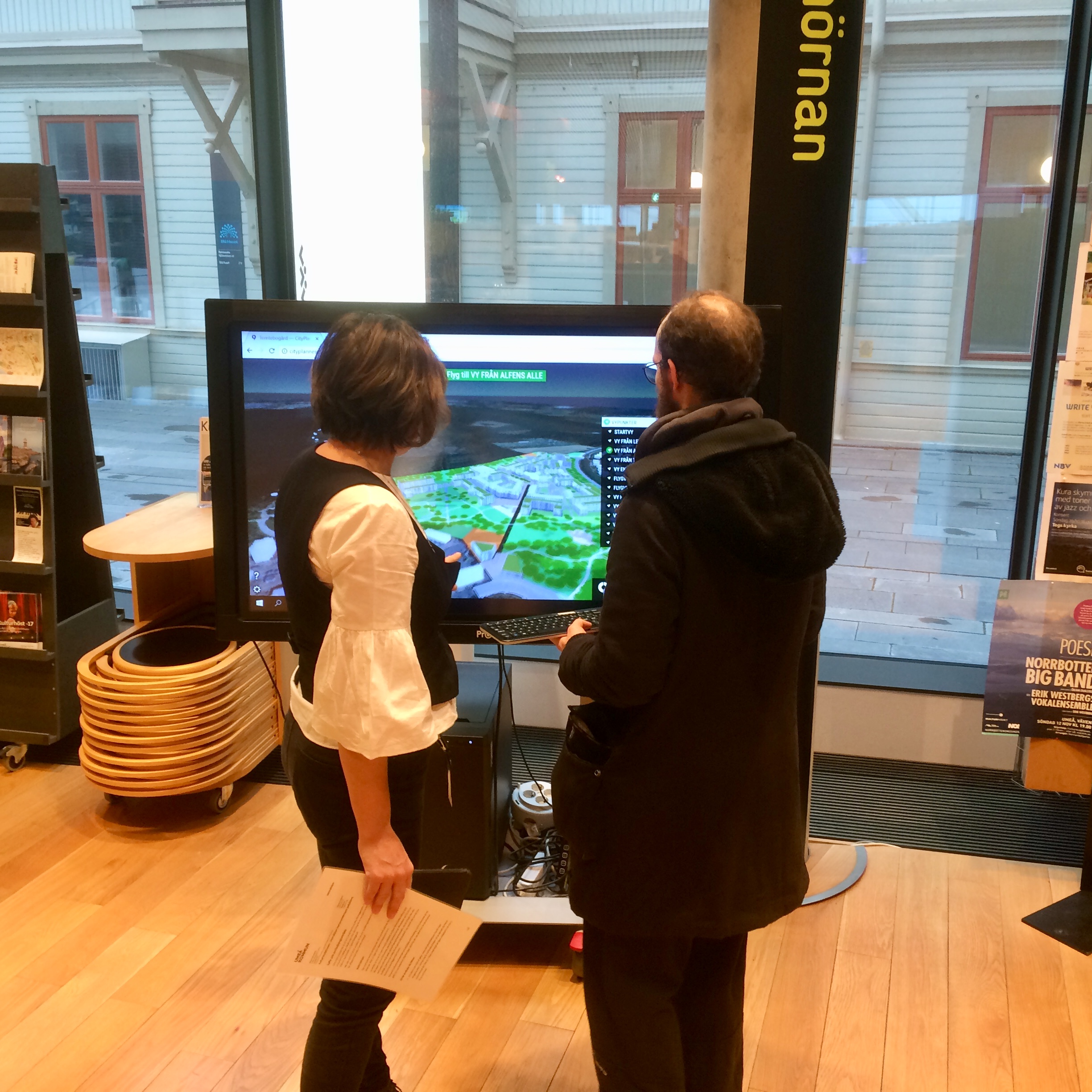 I kommunhörnan i Väven kunde man ta del av de dokument och bilder som ligger till grund för detaljplanen, det vill säga fördjupade översiktsplanen, visionsmanualen och gestaltningsprogrammet för Tomtebogård. Hela området kunde man se i 3D. Och framför allt kunde man alltså se förslaget till detaljplan.