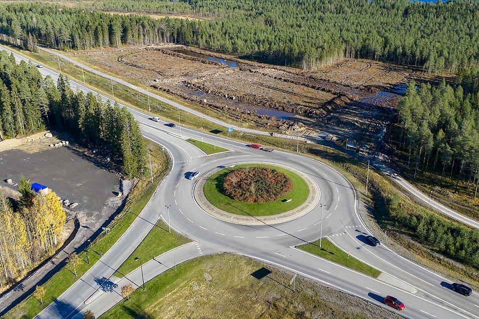 Markarbetet där Umeå östra brandstation ska byggas har startat. På bilden syns Universitetsrondellen vid Kolbäcksvägen.