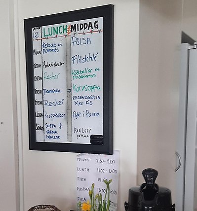 På tavlan visas veckans meny