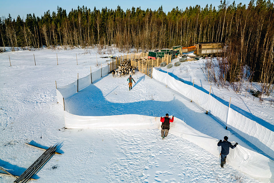 To gather the reindeer the herders use four-wheelers, motorcycles, dogs and sometimes even a helicopter. The owners mark their own calves with cuts into their ears to make them easily recognizable. Calf marking takes place in large paddocks. The reindeer is an arctic animal and does not thrive in heat, therefore gatherings and markings often take place in evenings and nights during summer.