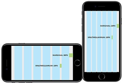På mobil mäter den vita ytan i sidhuvudet 120 px i höjd. Namn och rubrik är vänsterjusterade mot gridden och centrerade på den vita ytan. Texten kan utnyttja alla kolumner.
