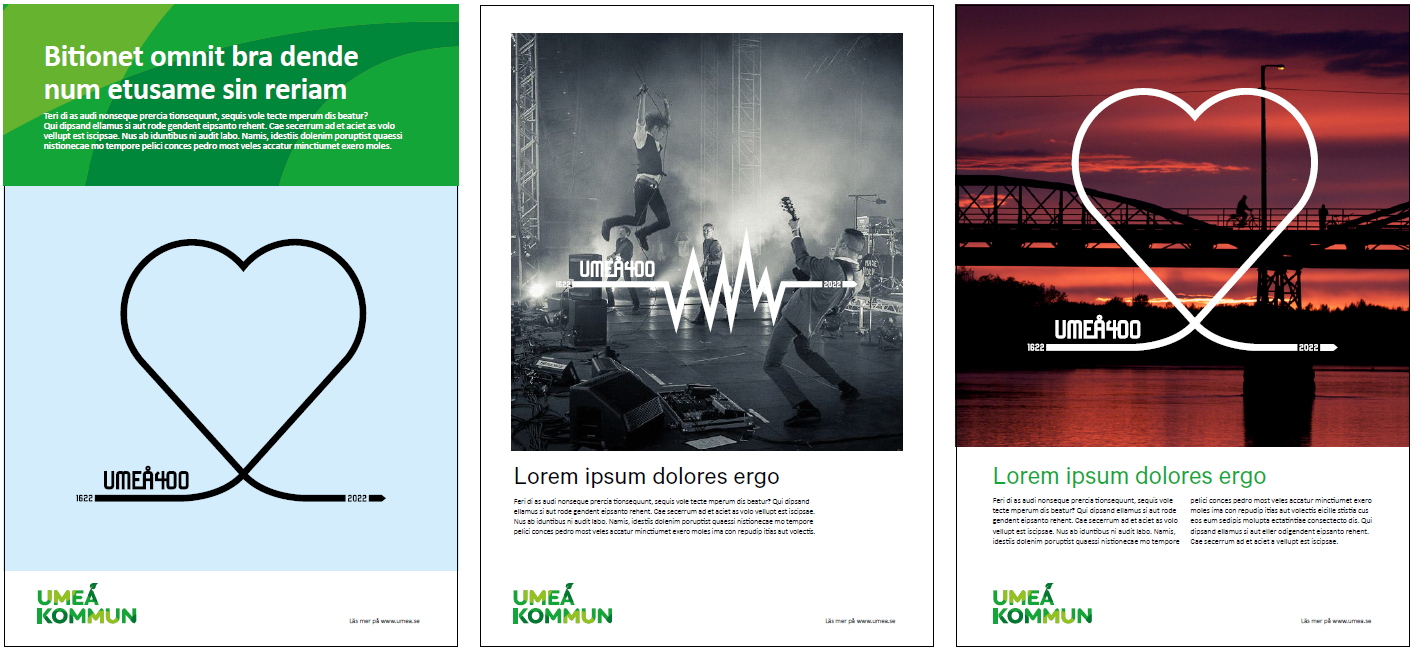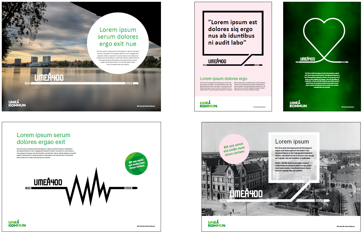 NärUmeå kommun arrangerar eller bidrar till jubileumsfirandet enligt uppsatta kriterier, kan illustrationer och logotyp komplettera budskapen. Kontakta gärna din verksamhets kommunikatör innan du tar fram grafiska produktioner.