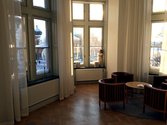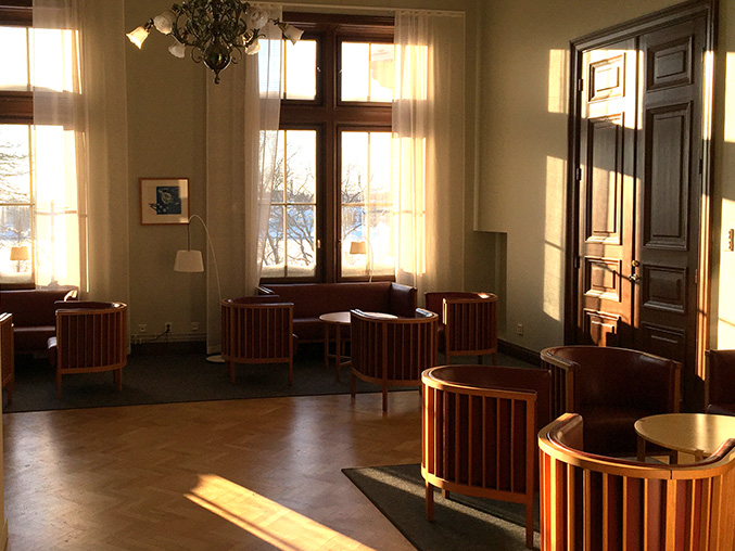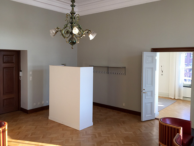 Vigselrummet i rådhuset är en trappa upp (hiss finns), i den sydöstra delen av byggnaden med utsikt mot Rådhus­parken. Det är dels ett större rum med flera fåtöljer och bord samt möjlighet att hänga av sig ytterkläder och dels ett mindre rum som brukar användas för själva vigselceremonin.