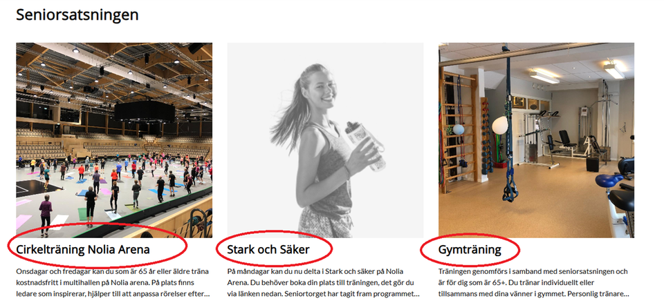 2. Scrolla ner till Seniorsatsningen och välj vilket pass du vill delta på.